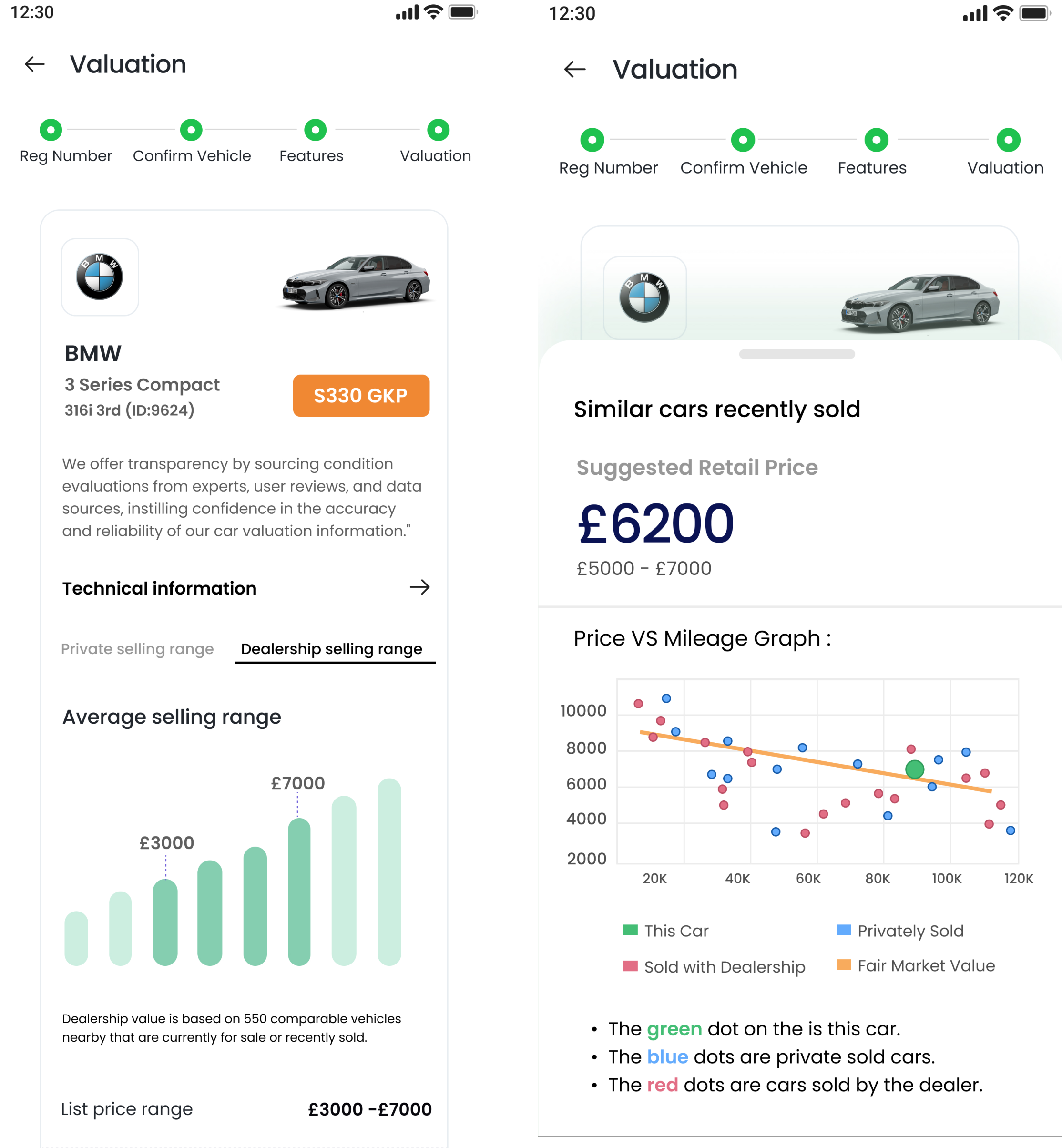 Comprehensive Valuation Insights The app categorizes car valuation results into Excellent, Good, and Poor, each with a suggested retail price and detailed description. This transparent approach helps users understand their car’s value and condition, aiding in accurate self-assessment.