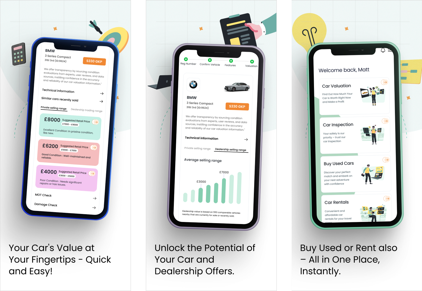 Personalized User Experience The app provides actionable insights by offering options for further checks, including MOT, Damage, and Full Vehicle Check. These options guide users on practical steps to potentially increase their car’s value or ensure its safety and reliability. The "Let’s address any other damages" button encourages proactive maintenance, which can lead to better valuation outcomes.
